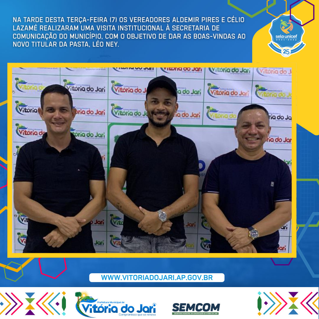 Na tarde desta terça-feira (7) os vereadores Aldemir Pires e Célio Lazamé realizaram uma visita institucional à Secretaria de Comunicação do município, com o objetivo de dar as boas-vindas ao novo titular da pasta, Léo Ney.